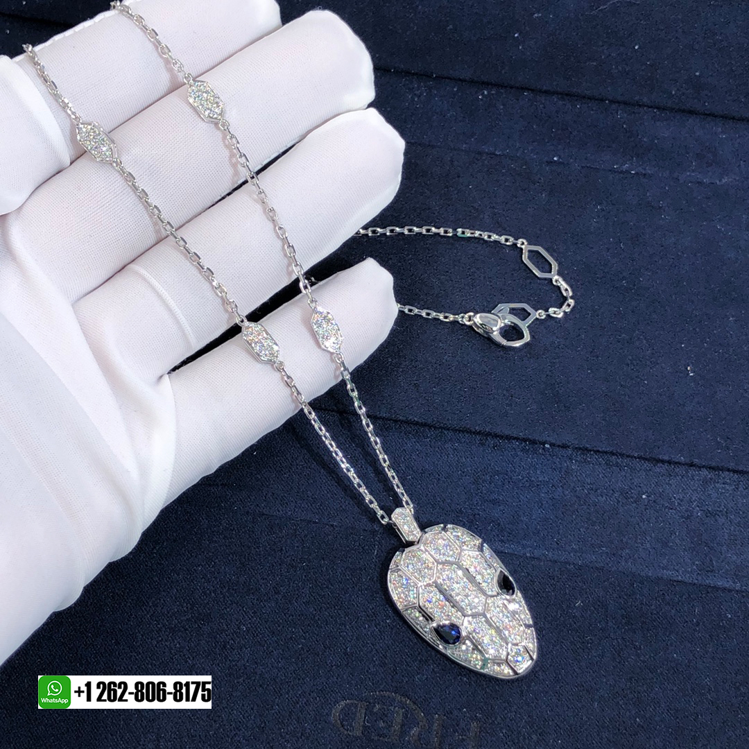 18kluxury is a professional jewelry factory with more than 10 years experience. We can make any design of gold & diamond jewelry as per your requirements. If you are interested in this Authentic Bvlgari Serpenti Necklace18k White Gold With Blue Sapphire Eyes and Pavé Diamonds, Please contact us via the contact form via whatsapp +1 262 806 8175 or email [email protected].