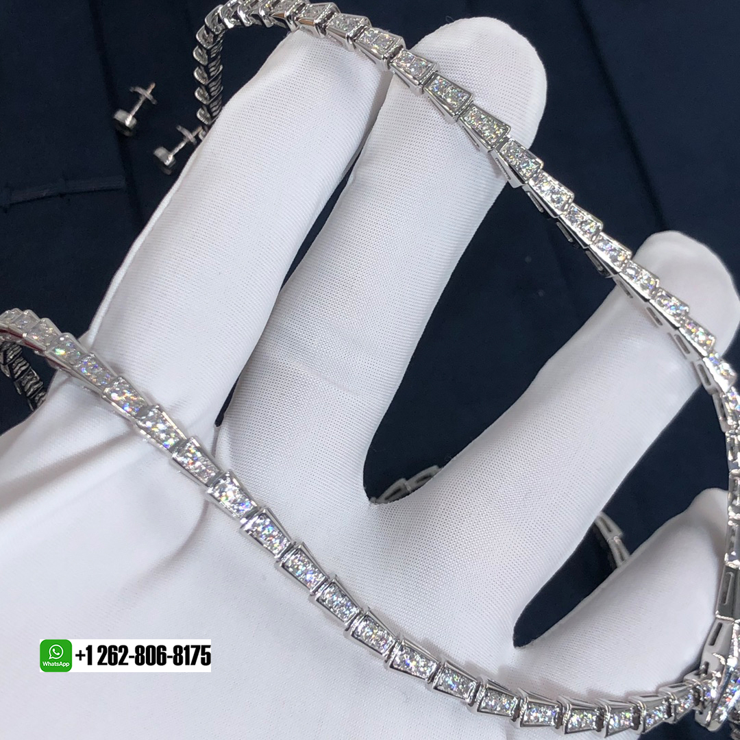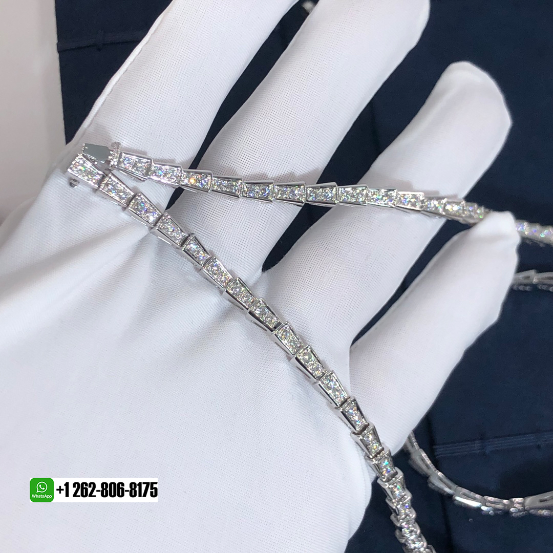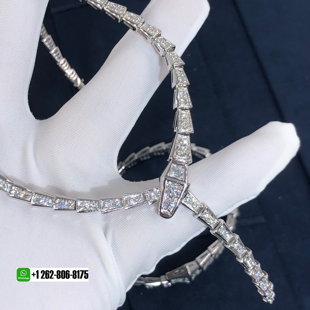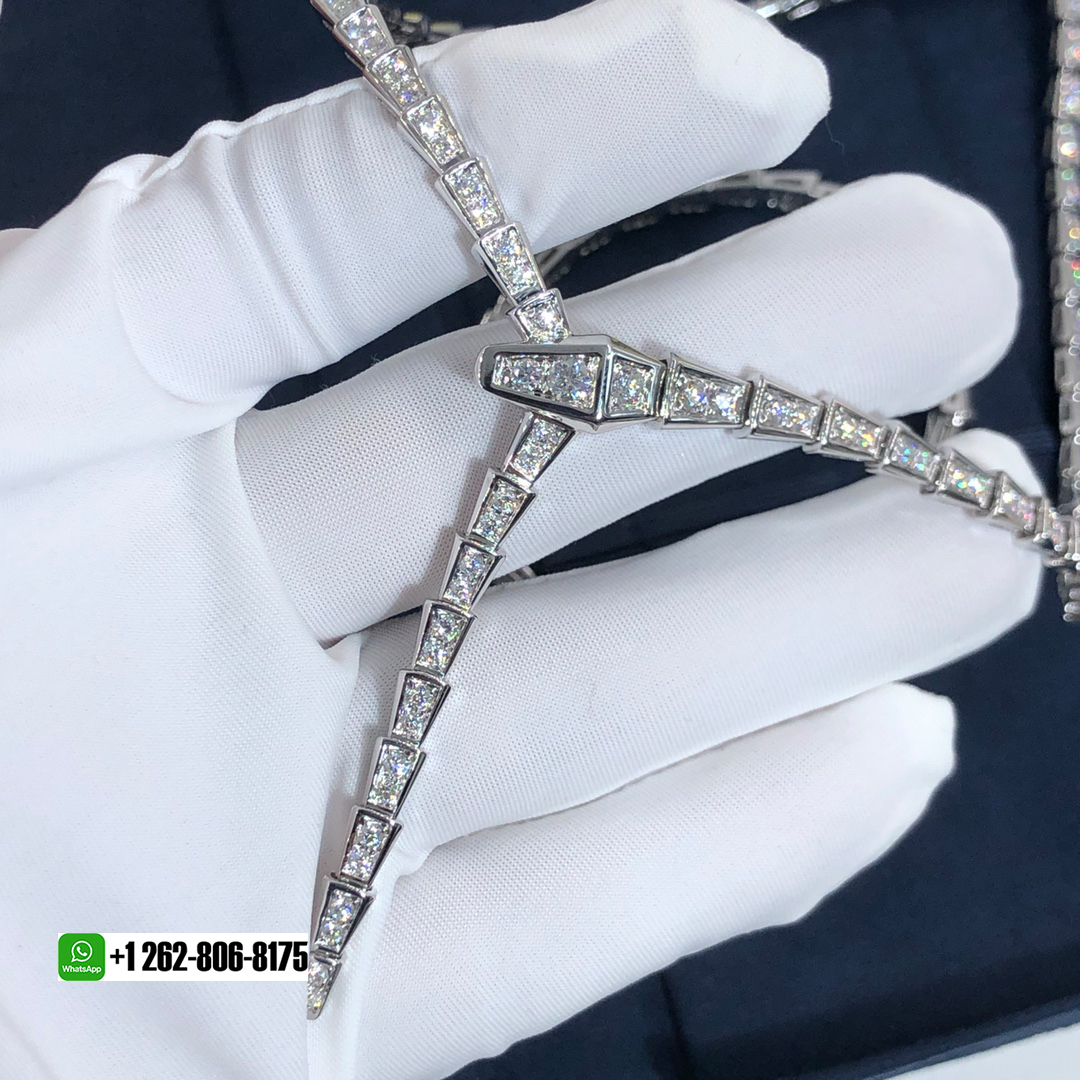 • Bvlgari Serpenti Viper 18k White Gold Full Diamond Pave Snake Necklace 351090