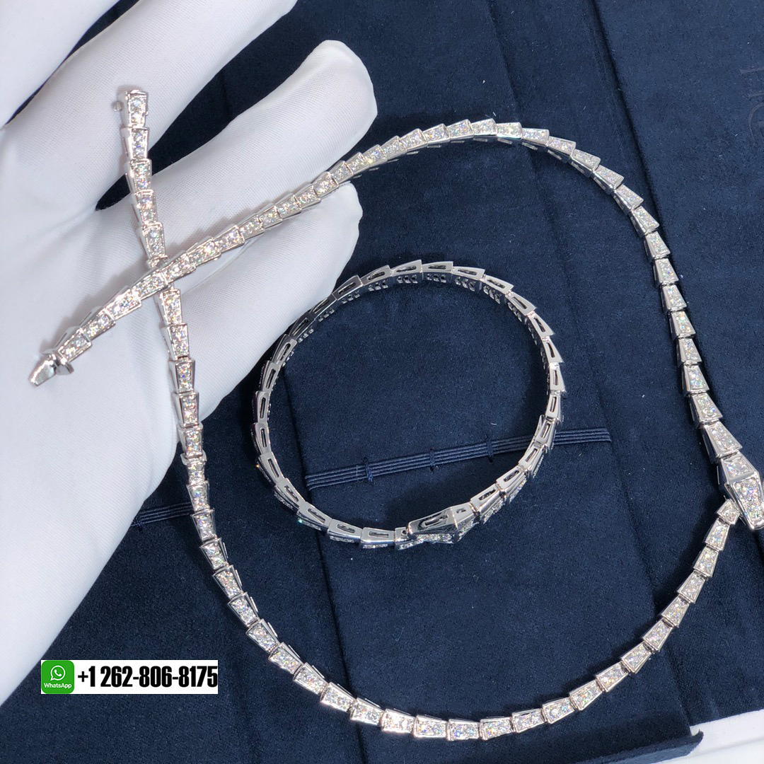18kluxury is a professional jewelry factory with more than 10 years experience. We can make any design of gold & diamonds jewelry as per your requirements. If you are interested in this Authentic Bvlgari Serpenti Viper 18k White Gold Full Diamond Pave Snake Necklace, Please contact us via the contact form via whatsapp +1 262 806 8175 or email [email protected].
