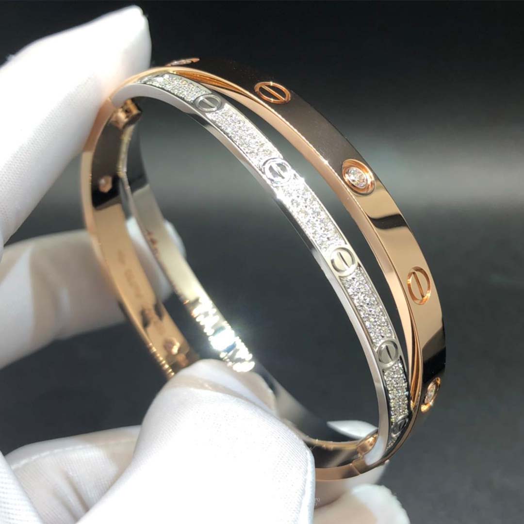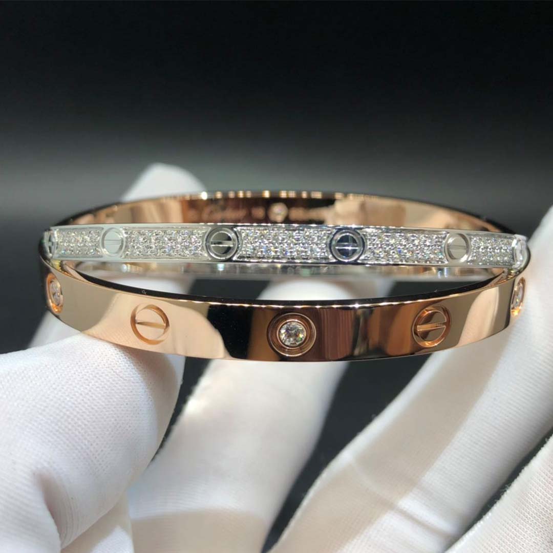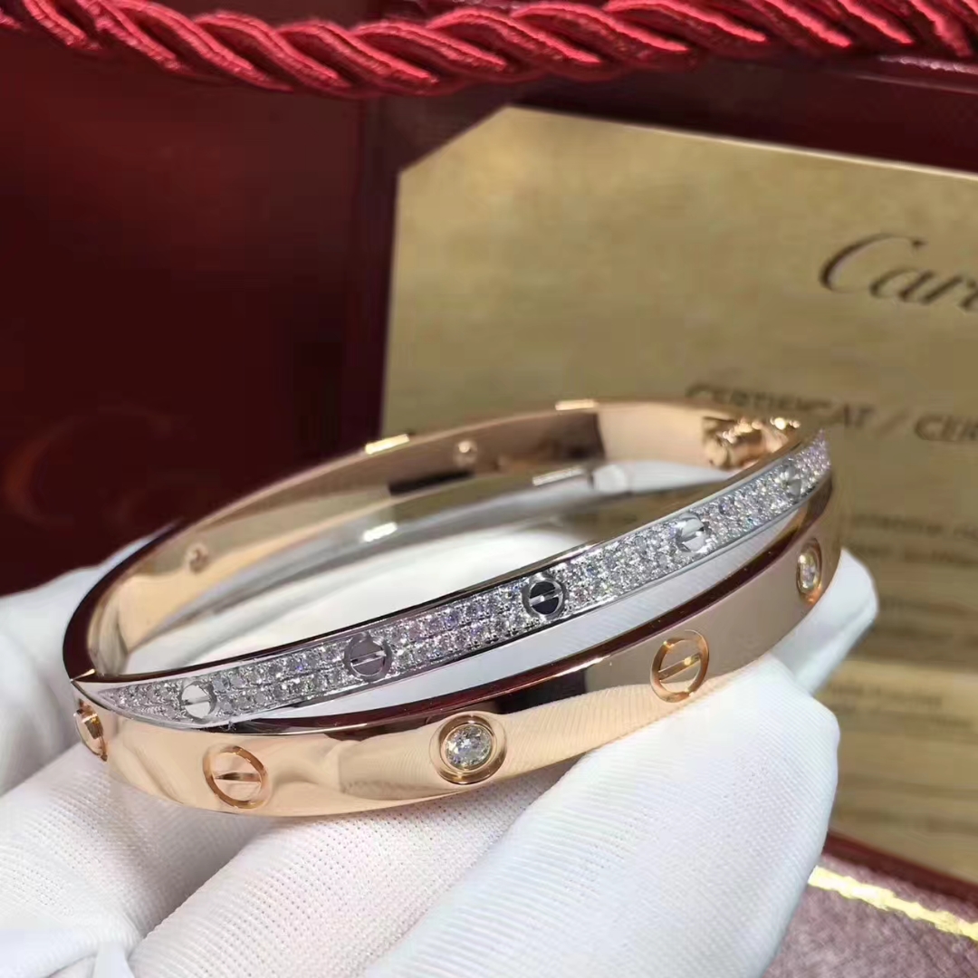 Do you love this Authentic 18K Rose and White Gold Diamond Paved Cartier Love Bracelet? Here at 18kluxury.com, we can do specially for you in amazing price. 100% mirror quality, real solid 18k gold and genuine diamonds guaranteed. Top workmanship and factory direct selling. Please inquire us via E-mail [email protected] or Whatsapp +1 (262)806-8175 for pricing.