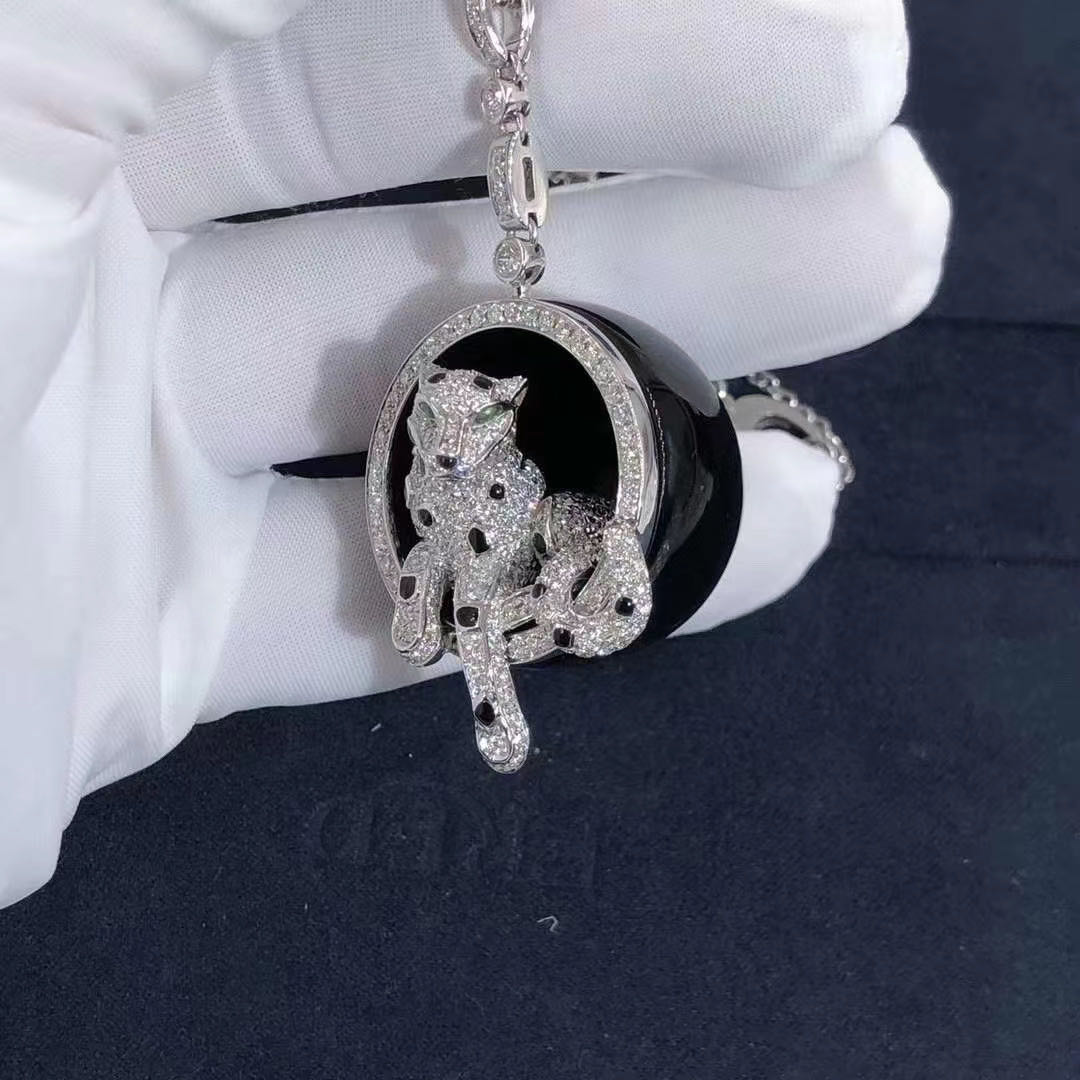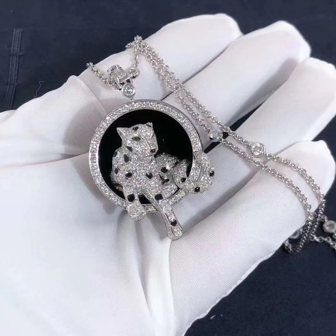 Buy Real solid 18k gold and genuine diamonds Cartier jewelry from 18Kluxury.com. Top workmanship and factory direct selling. If you love this Authentic Cartier 18k White Gold Black Nephrite Jade Diamond Panthere de Cartier Necklace, Please inquire us via E-mail [email protected] or Whatsapp +1 (262)806-8175 for pricing.