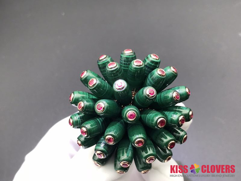 Real 18k gold, natural malachite stones and genuine diamonds guaranteed. Top workmanship and best price. Factory direct selling.
