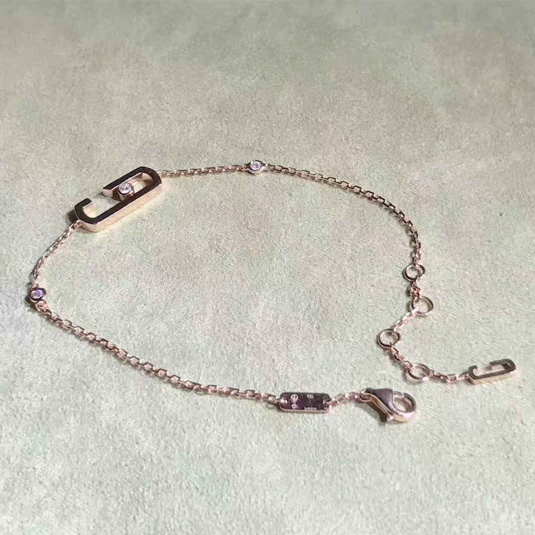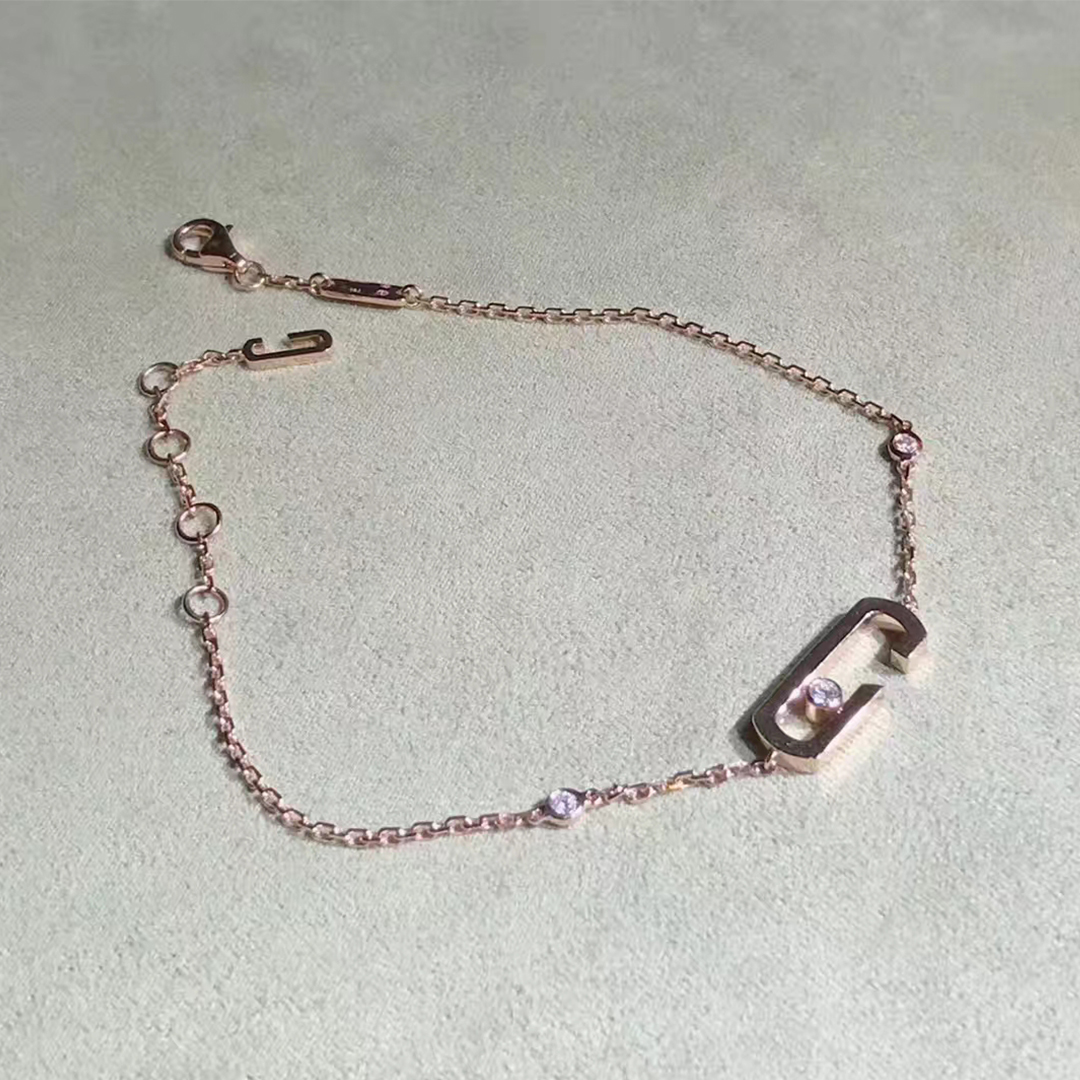 Stylized, addictive… The creative partnership of Messika and Gigi Hadid gave birth to this Move Addiction bracelet in 18 carat gold, completely handmade. The iconic House’s design is revamped by this dazing pair: the fine chain is adorned by the new precious opened Move cage with strong angles. This bracelet will entice you with its stylized and playful design: a close set diamond slides and shines according to one’s movement. Here in 18 carat pink gold, its luminous and original color will win over women who seek for a unique jewel. A bracelet to wear alone or stacked on the wrist. A stylish detail: the two diamonds adorning the chain also enlighten this jewel.