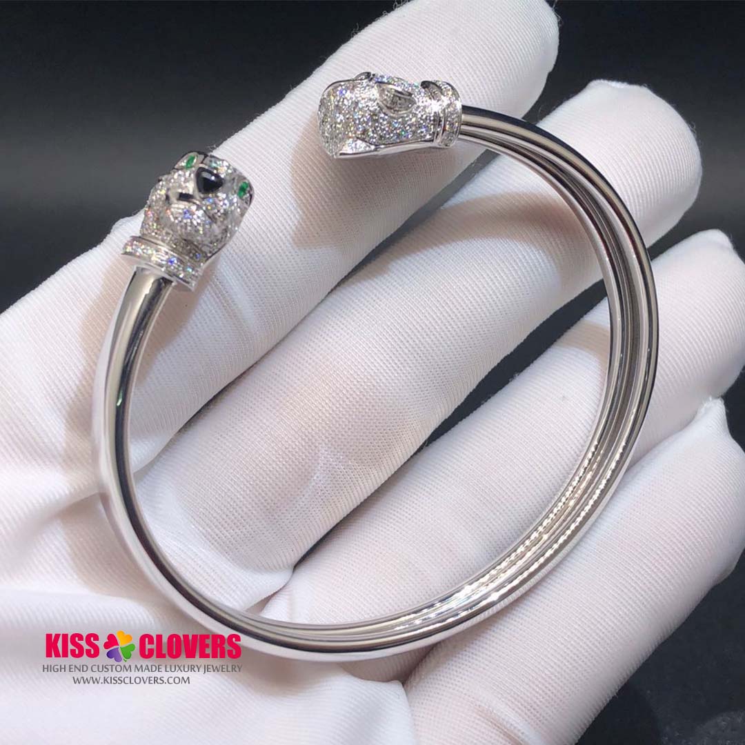 Panthère de Cartier Bracelet Double Panthere Heads 18K White Gold set with 194 Diamonds, Emeralds and Onyx N6706217
