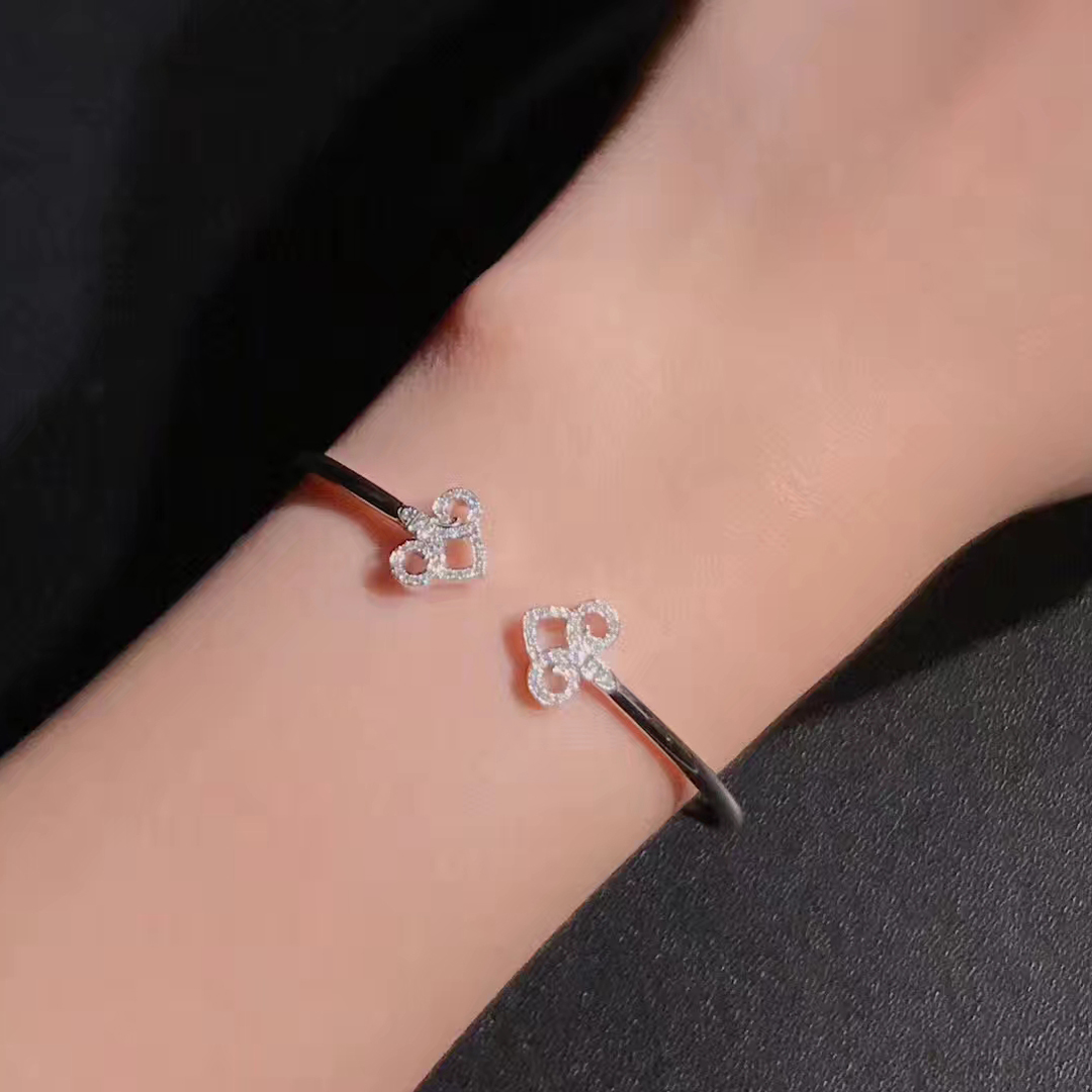 Feminine and delicate, the designs of the Tiffany Fleur de Lis collection offer a refined sense of graceful empowerment that speaks to quiet confidence. Dazzling diamonds adorn this bangle, making a striking statement.
