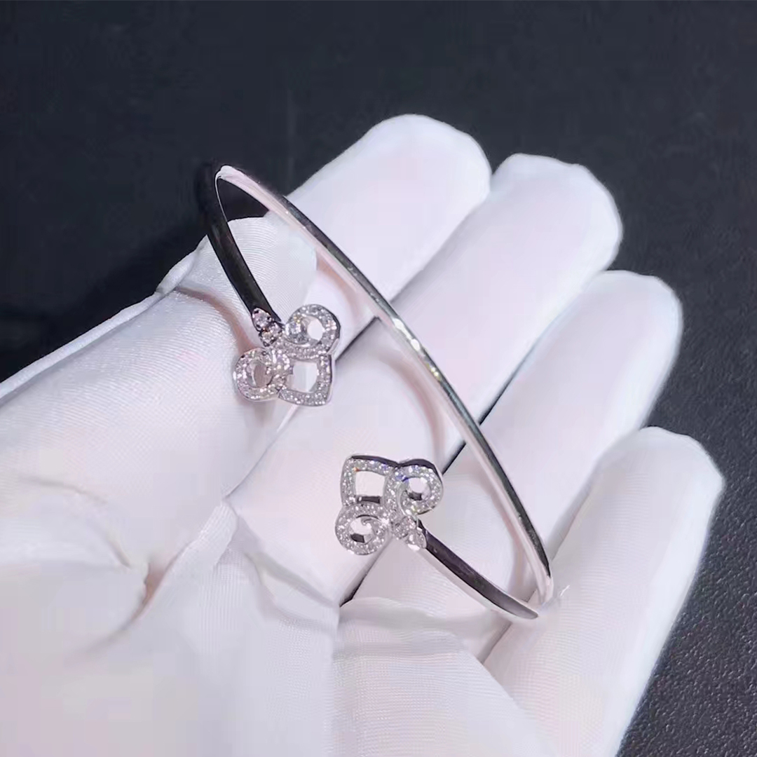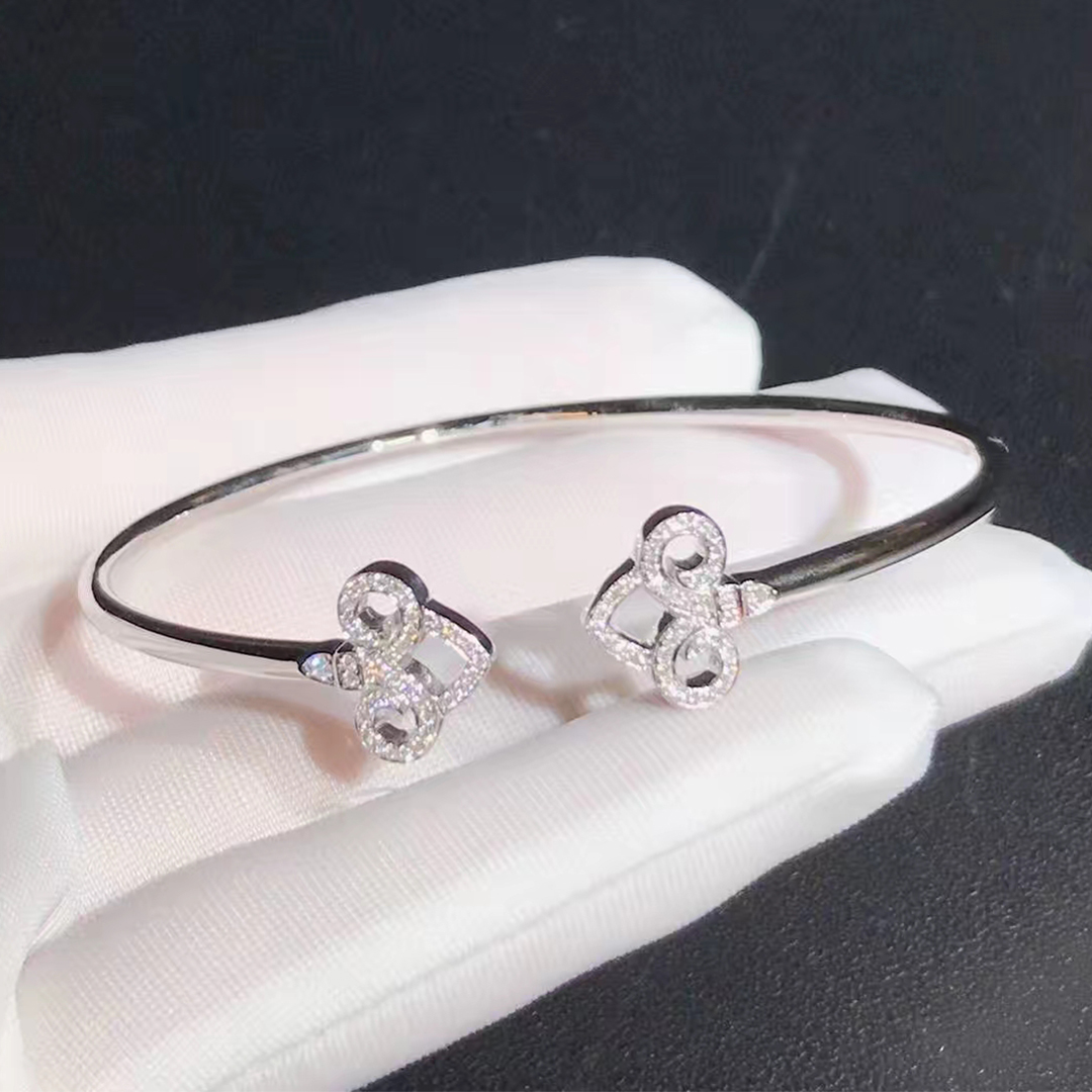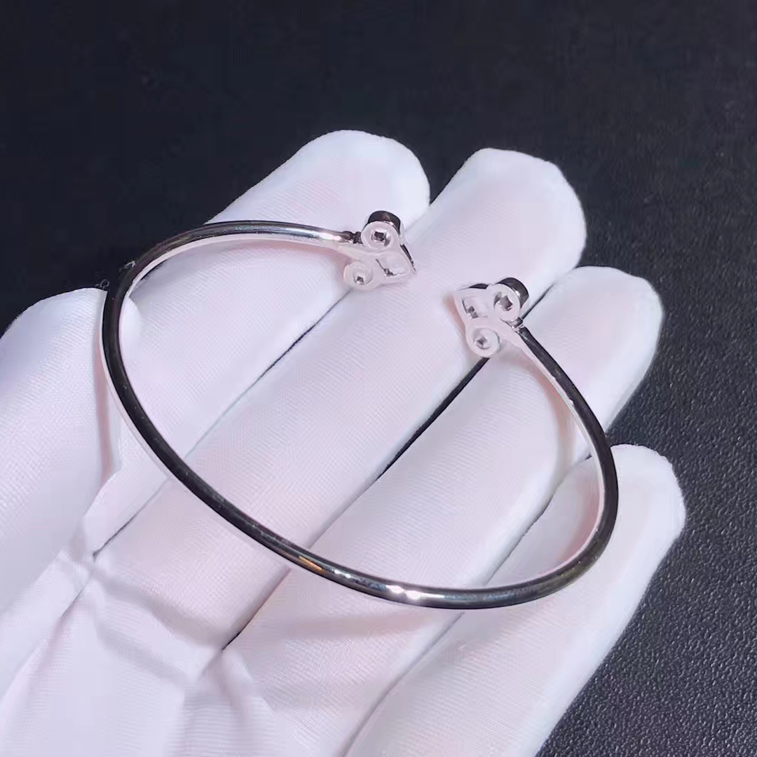 • Tiffany 18k White Gold Diamonds Fleur de Lis Wire Key Bangle Bracelet