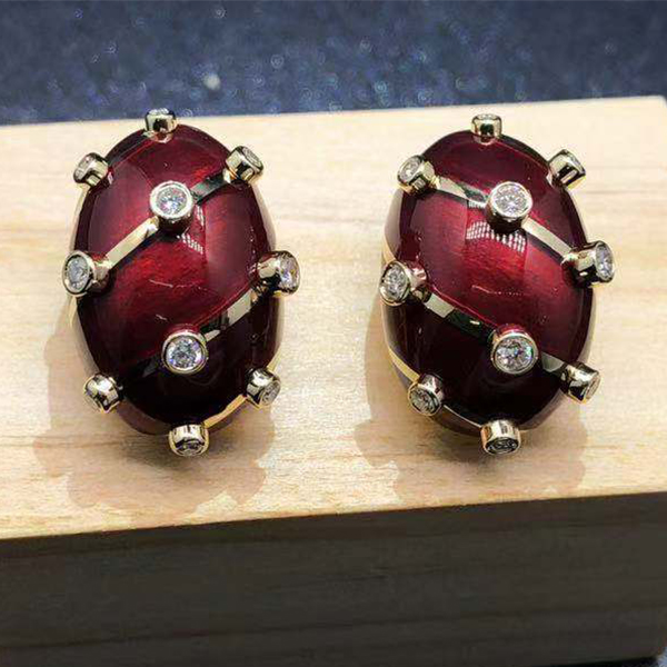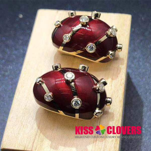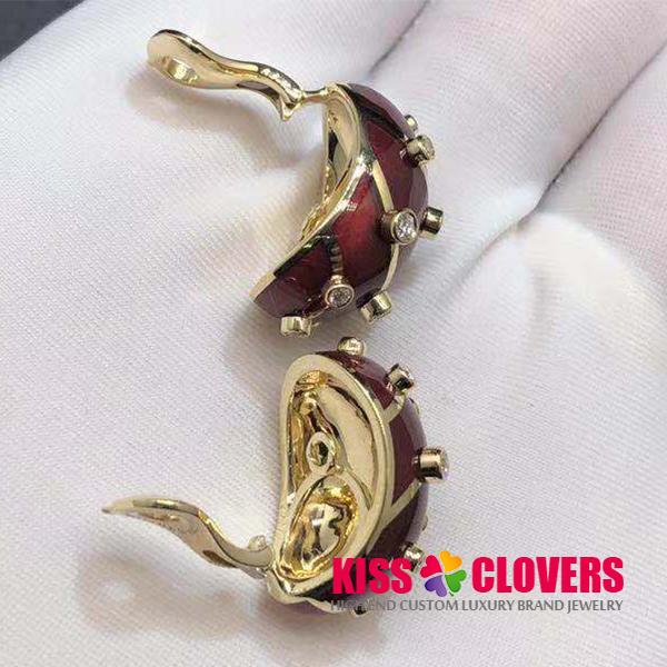 Material: 18k yellow gold (Weight 36.4g a pair), red enamel
