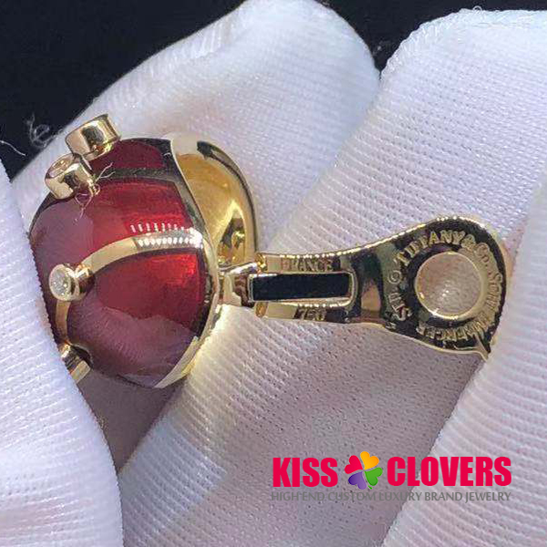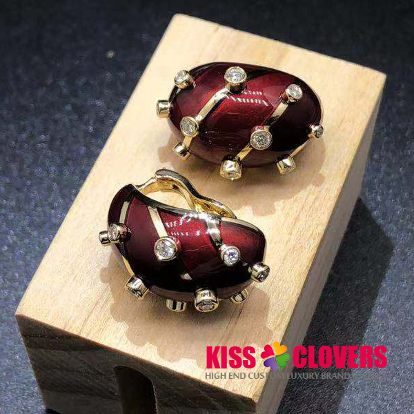• Tiffany & Co. 18K Yellow Gold Jean Schlumberger Red Enamel and Diamond Earrings