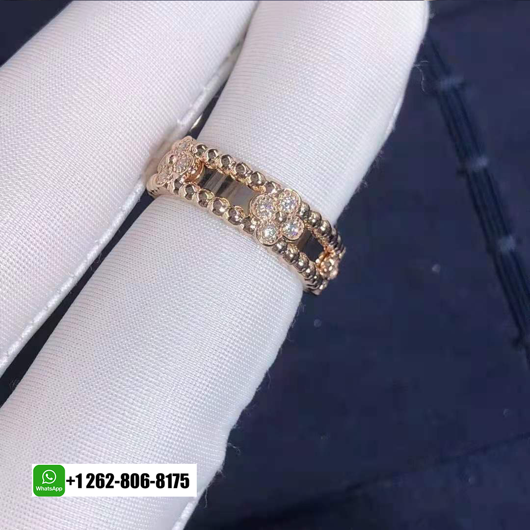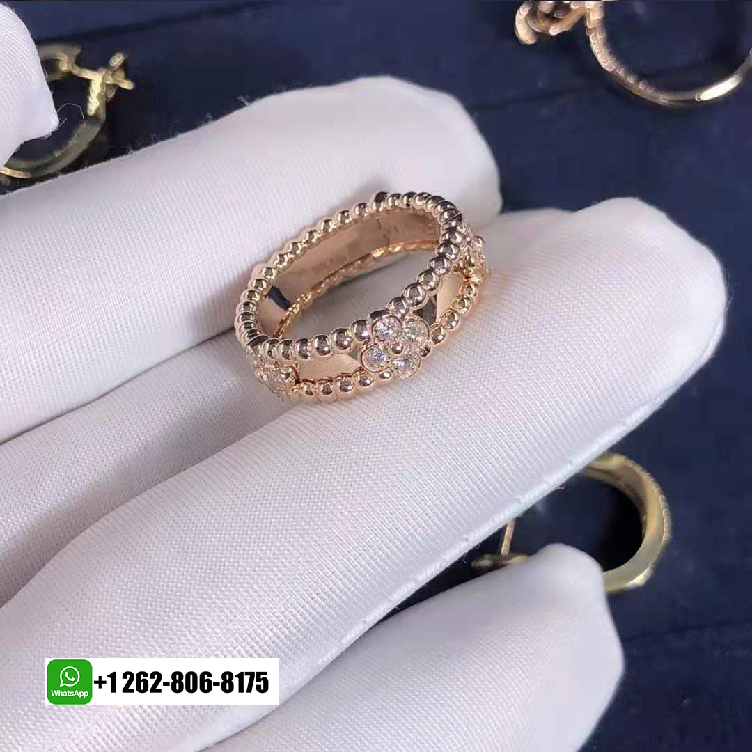 Perlée sweet clovers ring, rose gold, round diamonds; diamond quality DEF, IF to VVS.