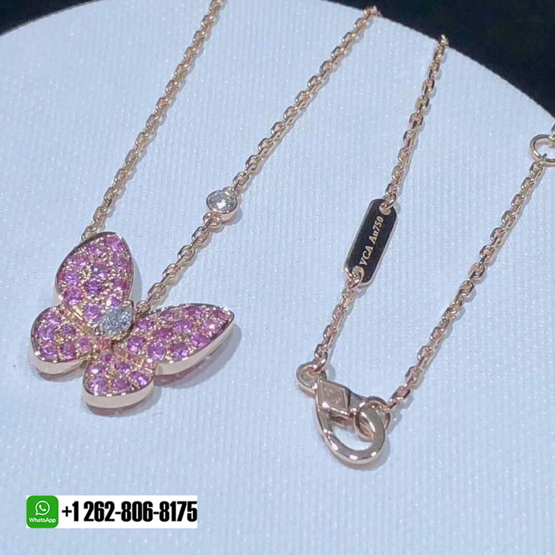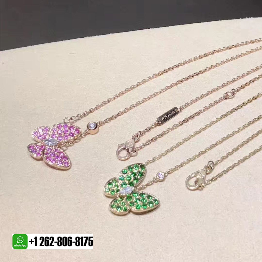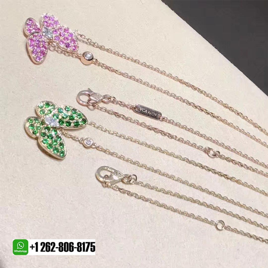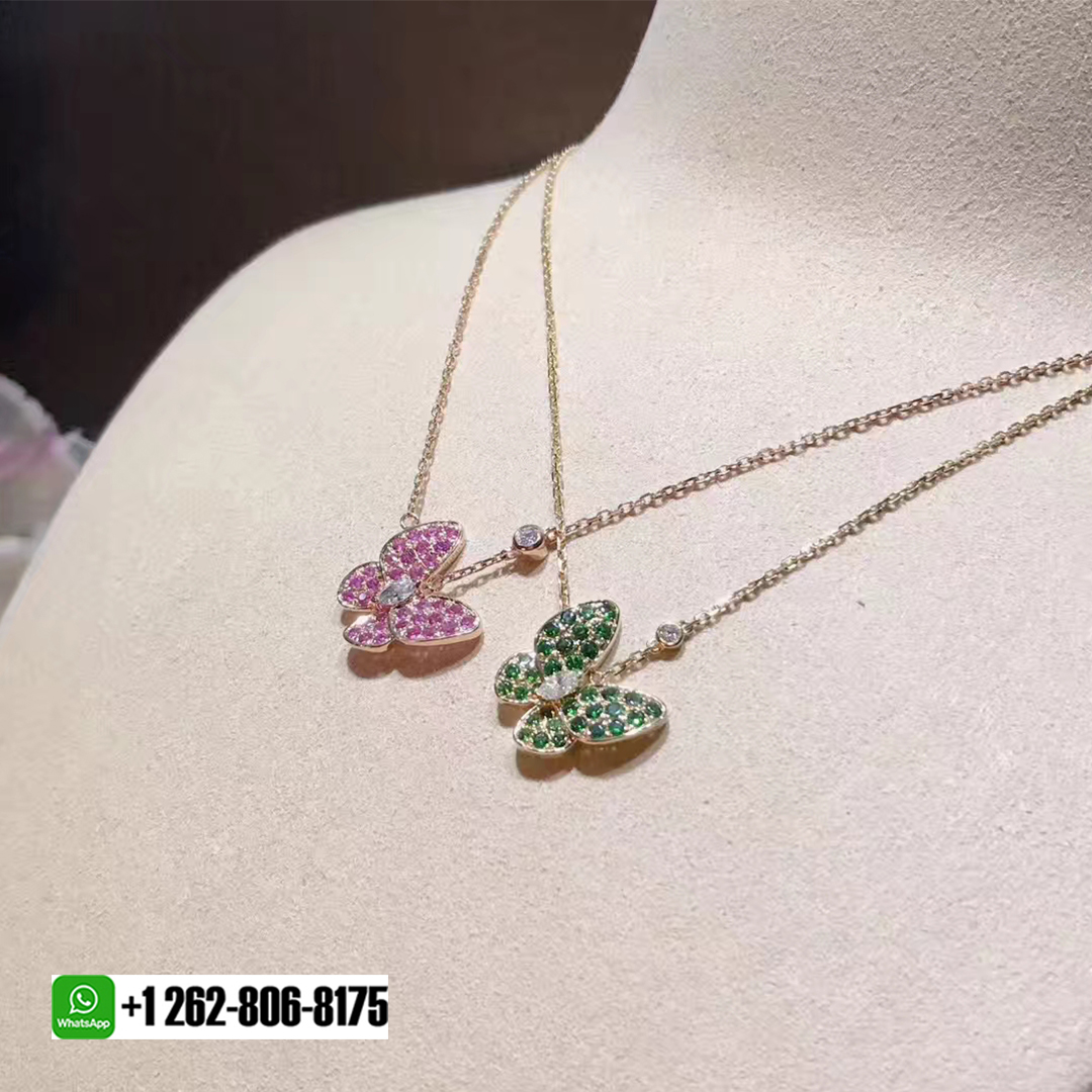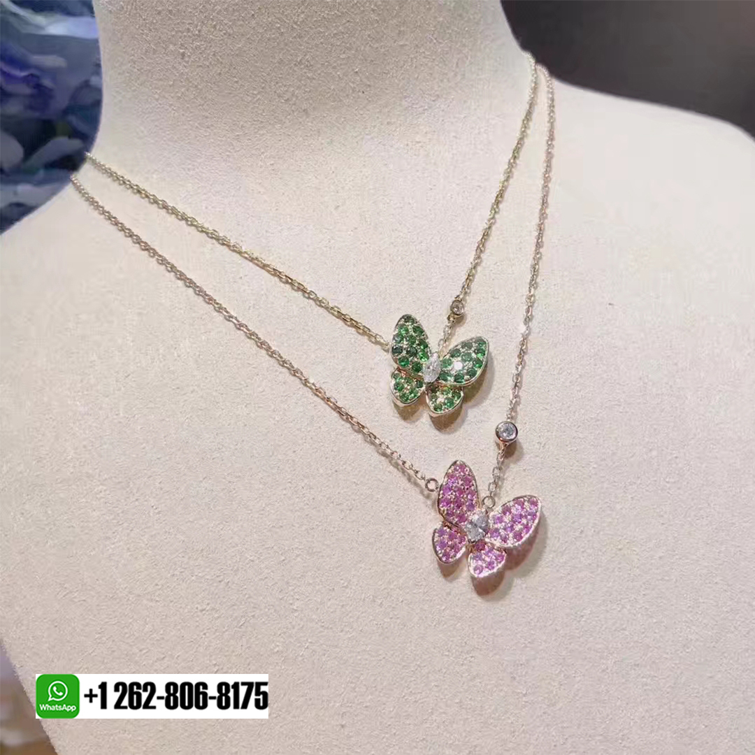 18kluxury is a professional jewelry factory with more than 10 years experience. We can make any design of gold & diamond jewelry as per your requirements. If you are interested in this Authentic Van Cleef & Arpels 18K Rose Gold Two Butterfly Diamond Pink Sapphire Pendant Necklace or Van Cleef & Arpels 18K Rose Gold Two Butterfly Diamond Tsavorite Pendant Necklace, Please contact us via the contact form via whatsapp +1 262 806 8175 or email [email protected].