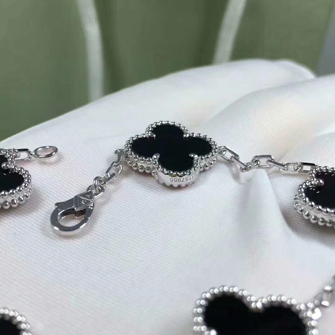 Do you love this Authentic Van Cleef & Arpels 18K White Gold Black Onyx 5 Motifs Vintage Alhambra Bracelet? Here at 18kluxury.com, we can do specially for you in amazing price. 100% mirror quality, real solid 18k gold and genuine diamonds guaranteed. Top workmanship and factory direct selling. Please inquire us via E-mail [email protected] or Whatsapp +1 (262)806-8175 for pricing.