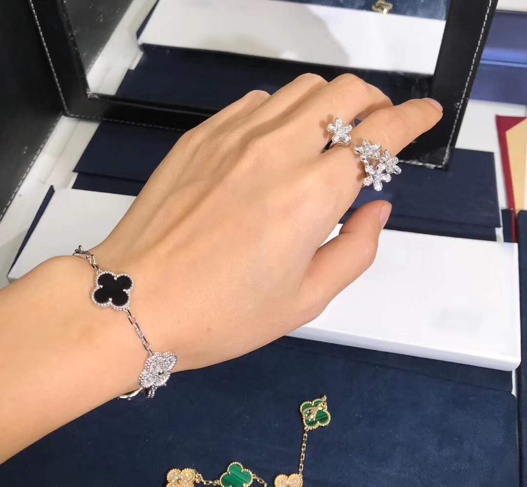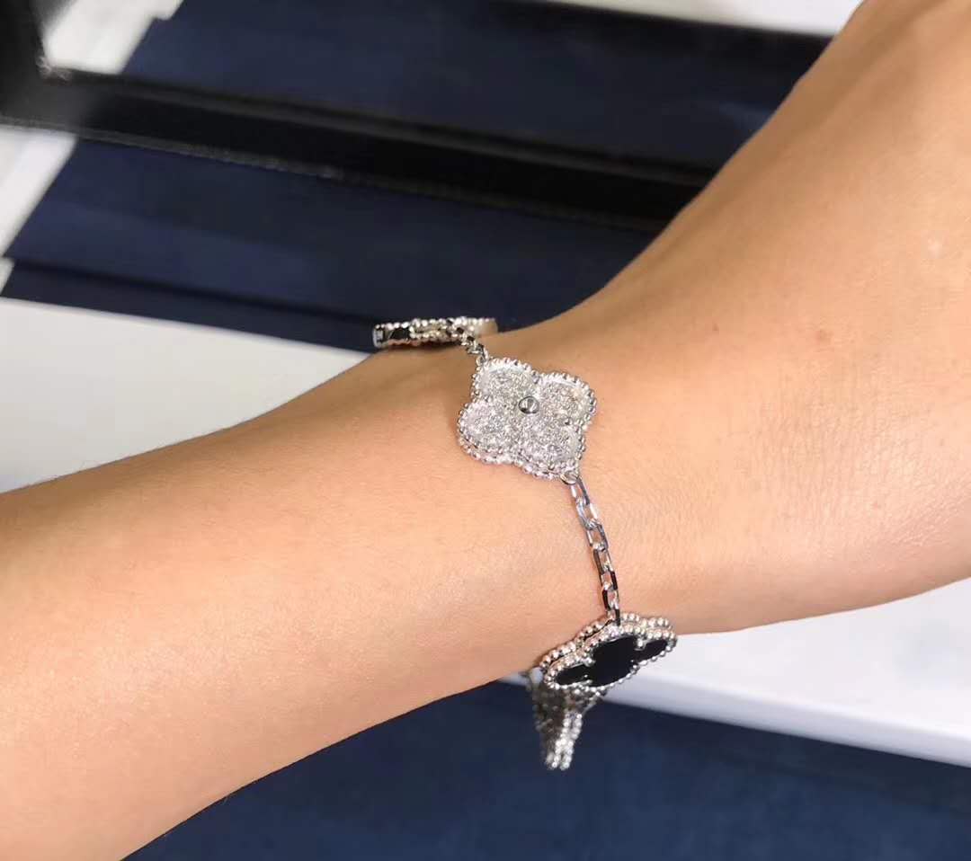 Do you love this Custom made Van Cleef & Arpels 18K White Gold Diamond Onyx 5 Motifs Vintage Alhambra Bracelet? Here at 18kluxury.com, we can do specially for you in amazing price. 100% mirror quality, real solid 18k gold and genuine diamonds guaranteed. Top workmanship and factory direct selling. Please inquire us via E-mail [email protected] or Whatsapp +1 (262)806-8175 for pricing.