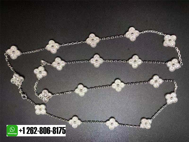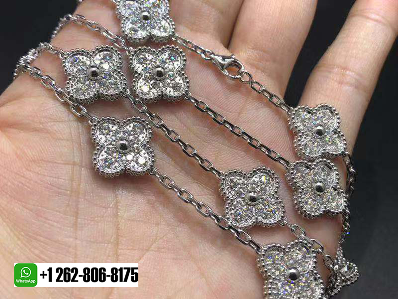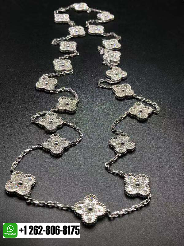 18kluxury is a professional jewelry factory with more than 10 years experience. We can make any design of gold & diamonds jewelry as per your requirements. If you are interested in this Van Cleef & Arpels 18K White Gold Diamond Vintage Alhambra Long Necklace, Please contact us via the contact form via whatsapp +1 262 806 8175 or email [email protected].