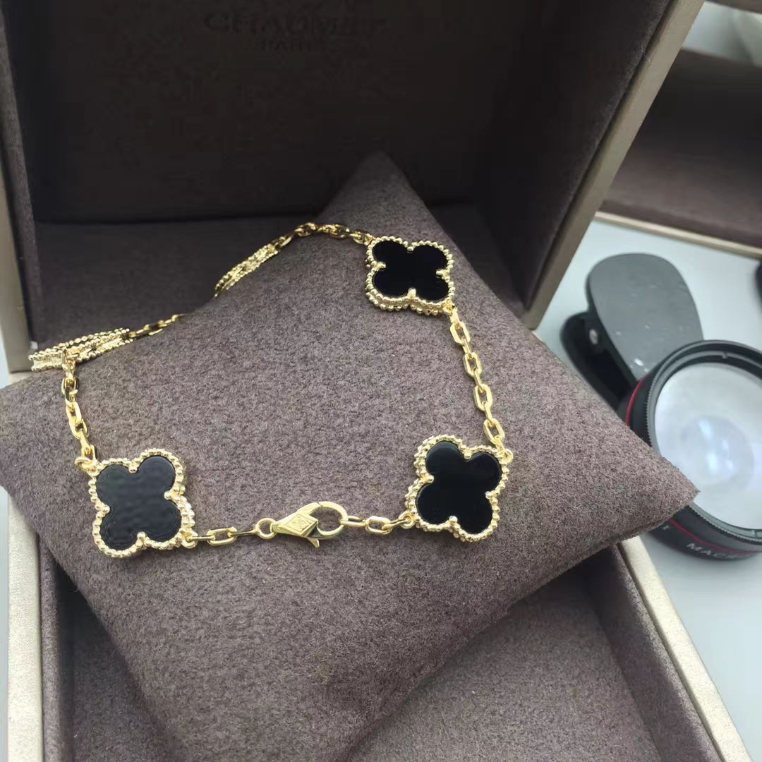 Do you love this Authentic Van Cleef & Arpels 18K Yellow Gold Black Onyx 5 Motifs Vintage Alhambra Bracelet? Here at 18kluxury.com, we can do specially for you in amazing price. 100% mirror quality, real solid 18k gold and genuine diamonds guaranteed. Top workmanship and factory direct selling. Please inquire us via E-mail [email protected] or Whatsapp +1 (262)806-8175 for pricing.