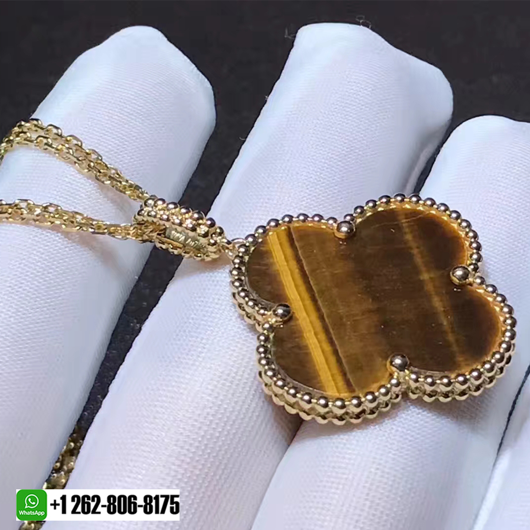 • Van Cleef & Arpels 18k Yellow Gold Magic Alhambra Tiger’s Eye 1 Motif Long Necklace