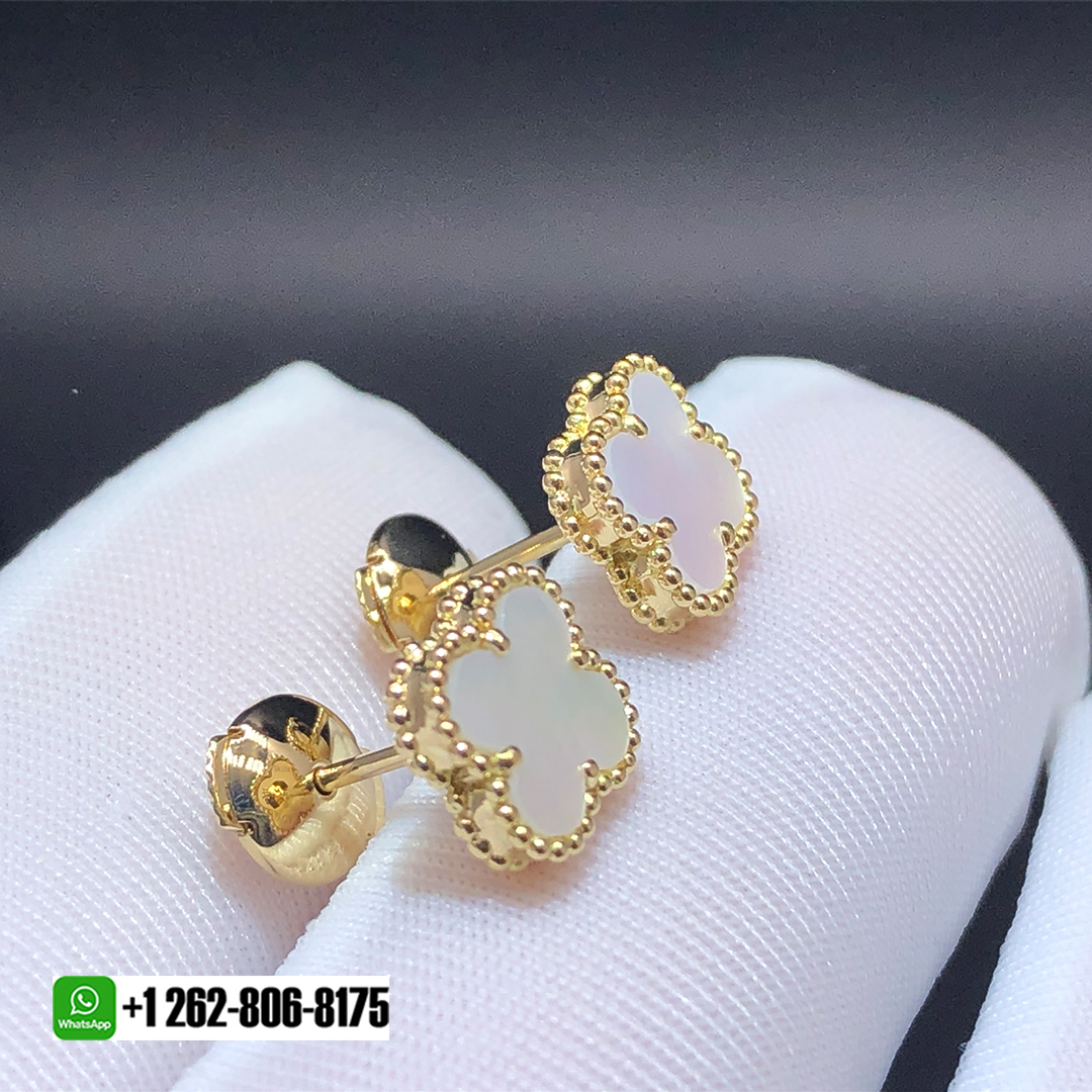 • Van Cleef & Arpels 18K Yellow Gold Mother of Pearl Sweet Alhambra Earstuds Earrings VCARA44800