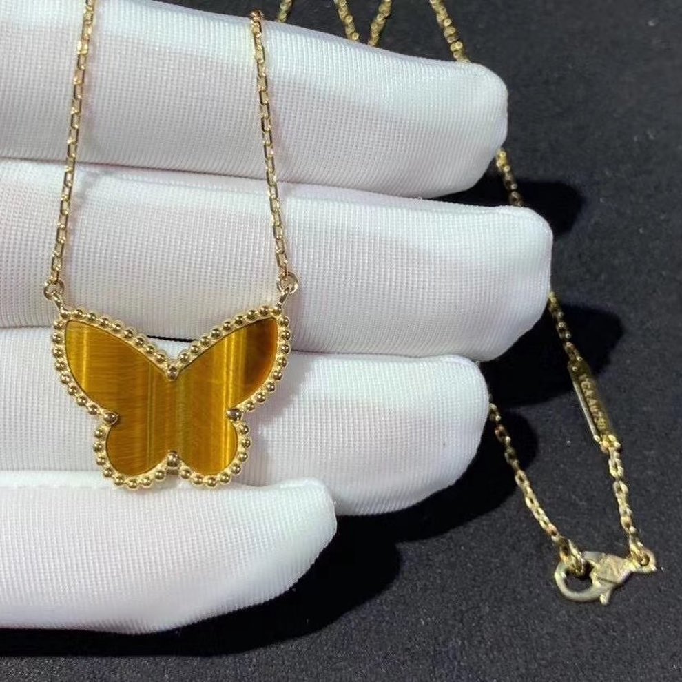 If you are interested in this Van Cleef & Arpels 18K Yellow Gold Tiger Eye Lucky Alhambra Butterfly Pendant Necklace, Please contact us via the contact form via whatsapp +1 262 806 8175 or email [email protected].