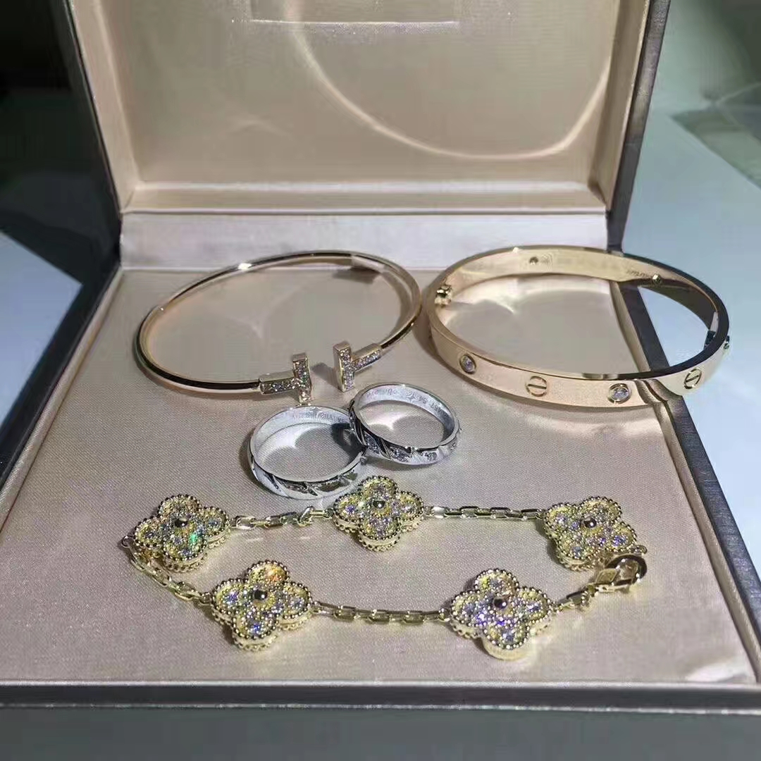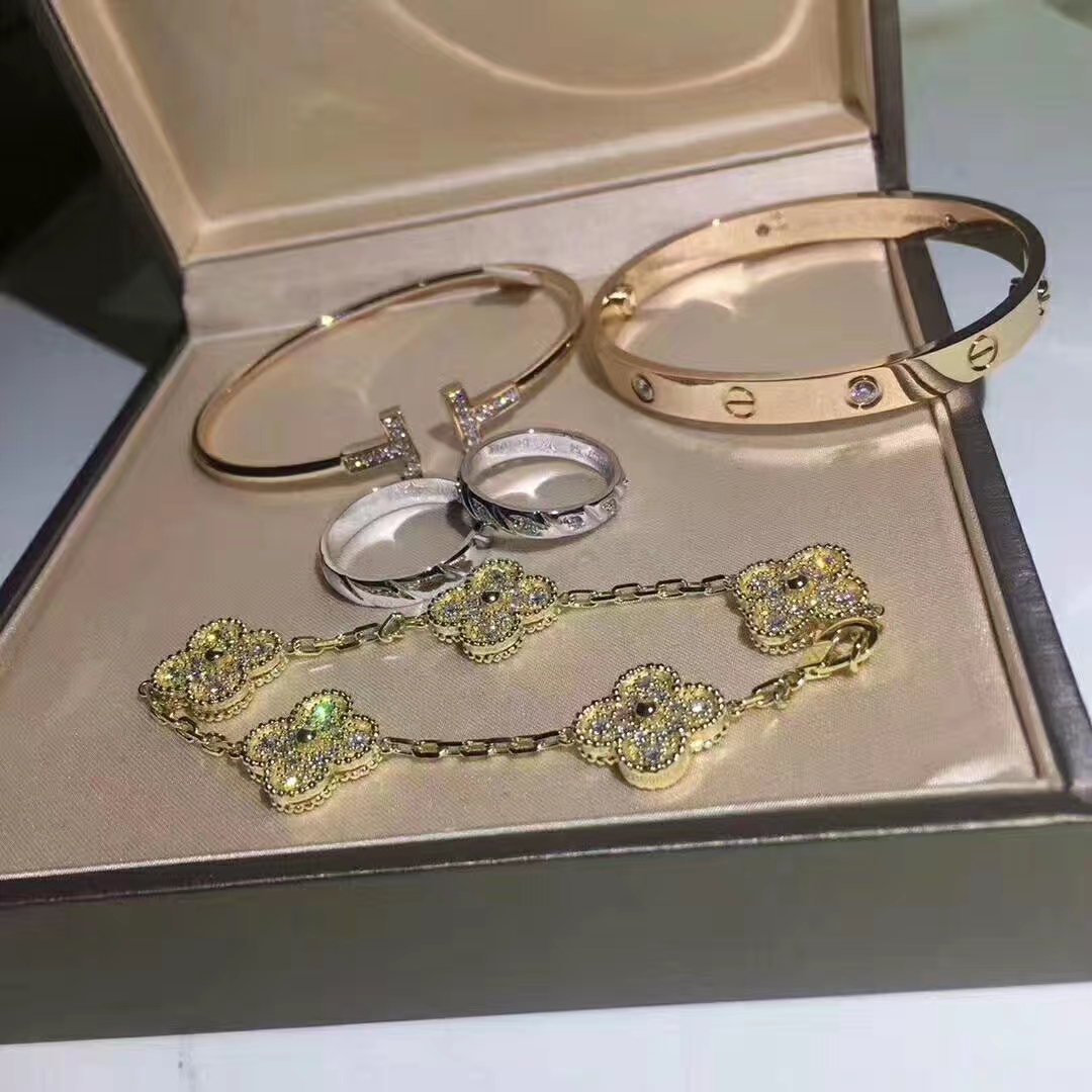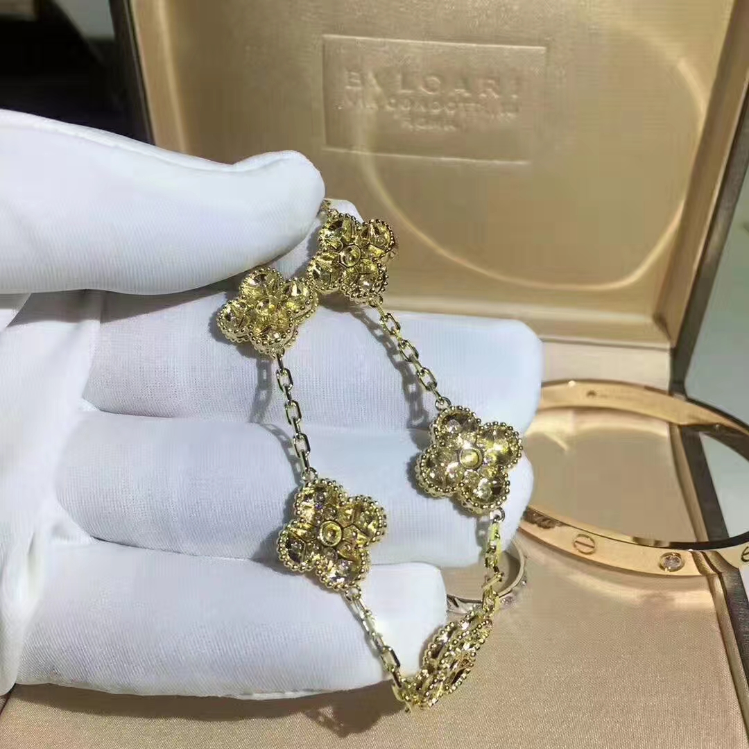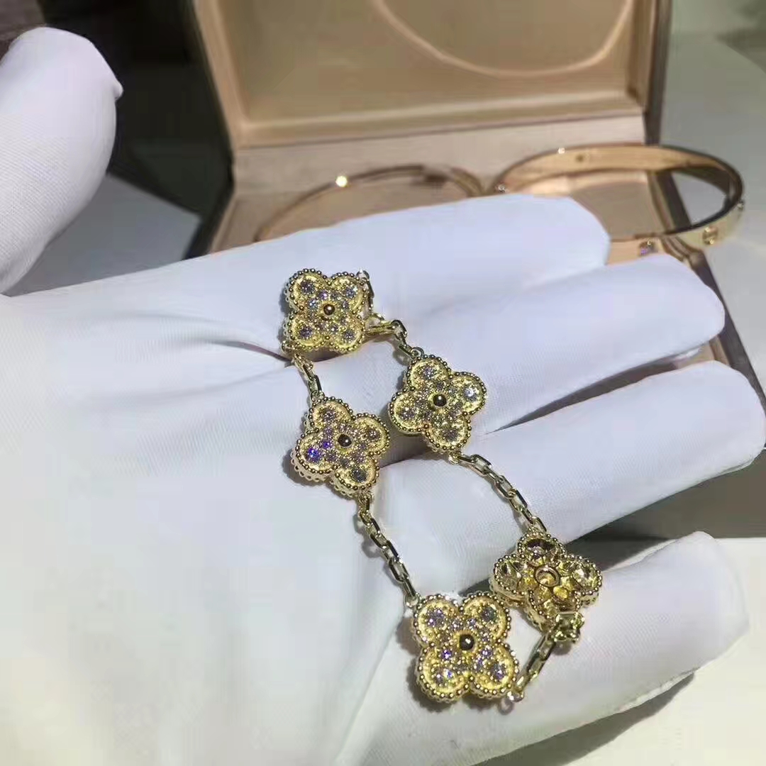 Van Cleef & Arpels 18K Yellow Gold Vintage Alhambra 5 Motifs Diamond Bracelet VCARA41400