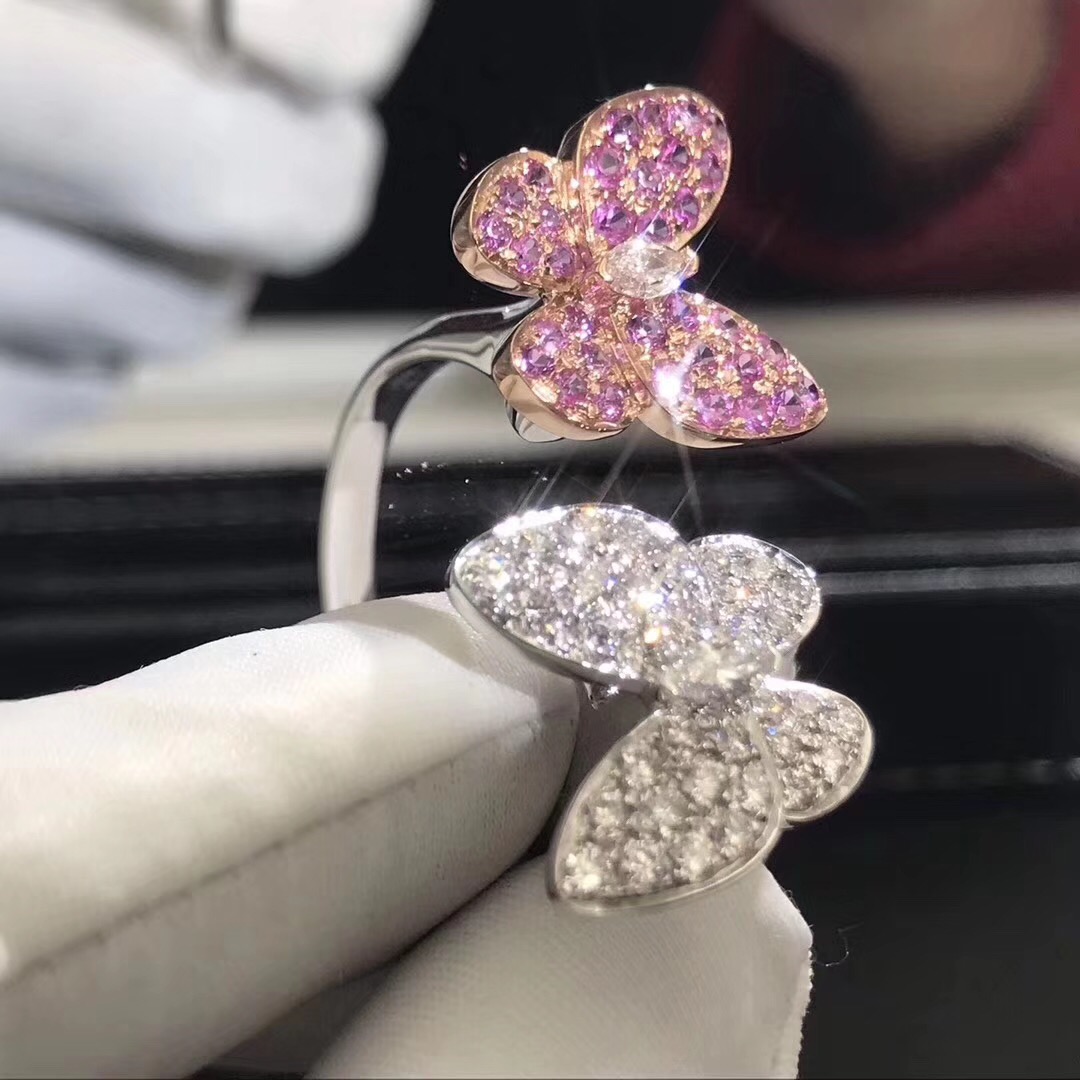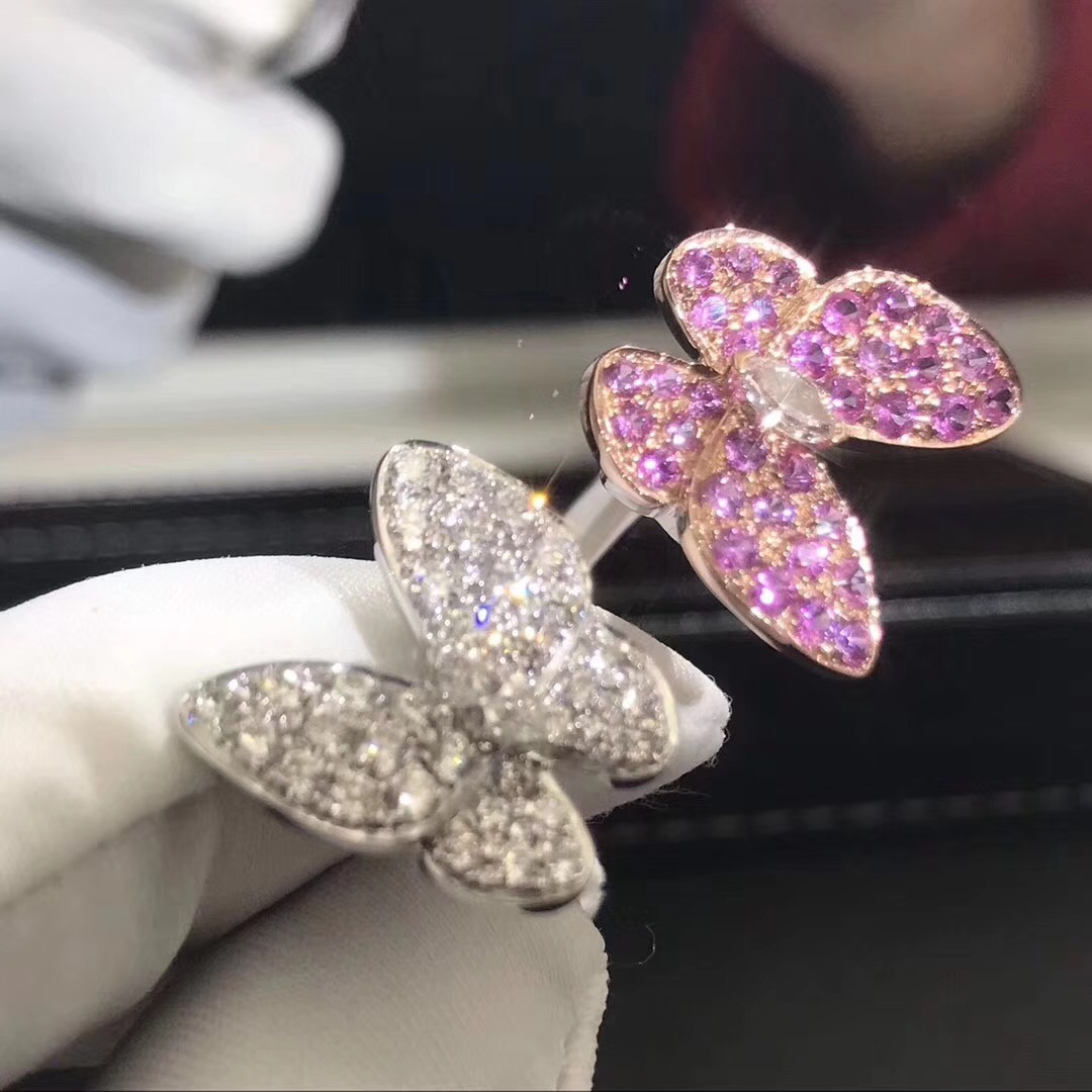 If you are interested in this Van Cleef & Arpels Diamond and Pink Sapphire Two Butterfly Between the Finger Ring, Please contact us via the contact form via whatsapp +1 262 806 8175 or email [email protected].