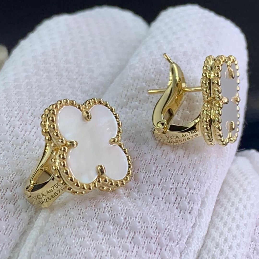 18kluxury is a professional jewelry factory with more than 10 years experience. We can make any design of gold & diamond jewelry as per your requirements. Real solid 18k gold and genuine diamonds guaranteed. Top workmanship and factory direct selling. If you love this Authentic Van Cleef & Arpels Vintage Alhambra White Mother of Pearl 18k Yellow Gold Earrings, Please inquire us via E-mail [email protected] or Whatsapp +1 (262)806-8175 for pricing.
