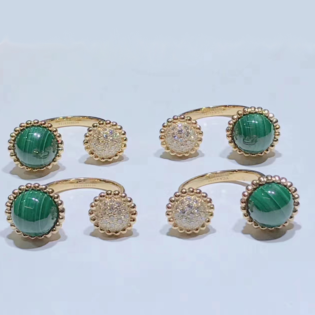 • VCA 18K Yellow Gold Malachite Diamond Perlée Couleurs Between the Finger Ring VCARO9SU00