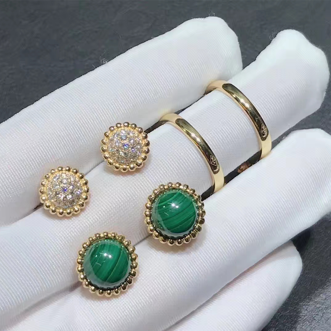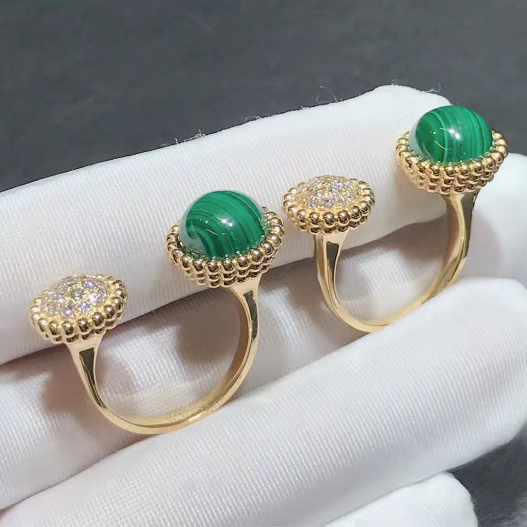 Van Cleef & Arpels Perlée couleurs Between the Finger ring, yellow gold, malachite, round diamonds; diamond quality DEF, IF to VVS.