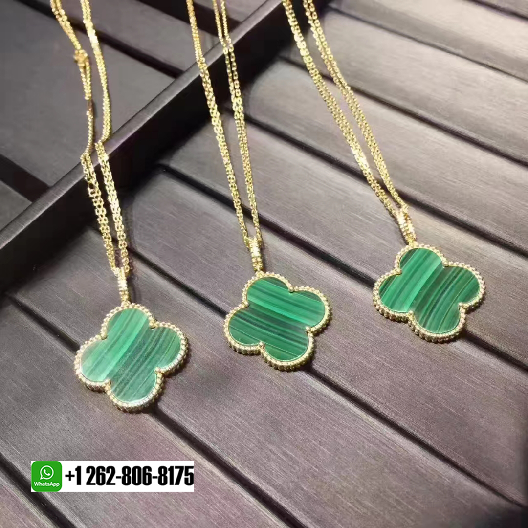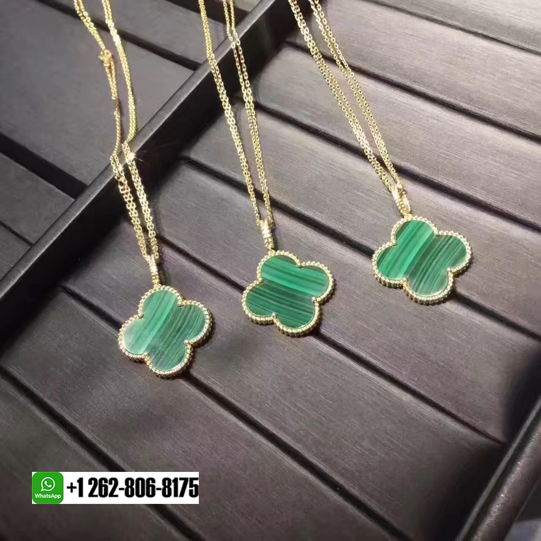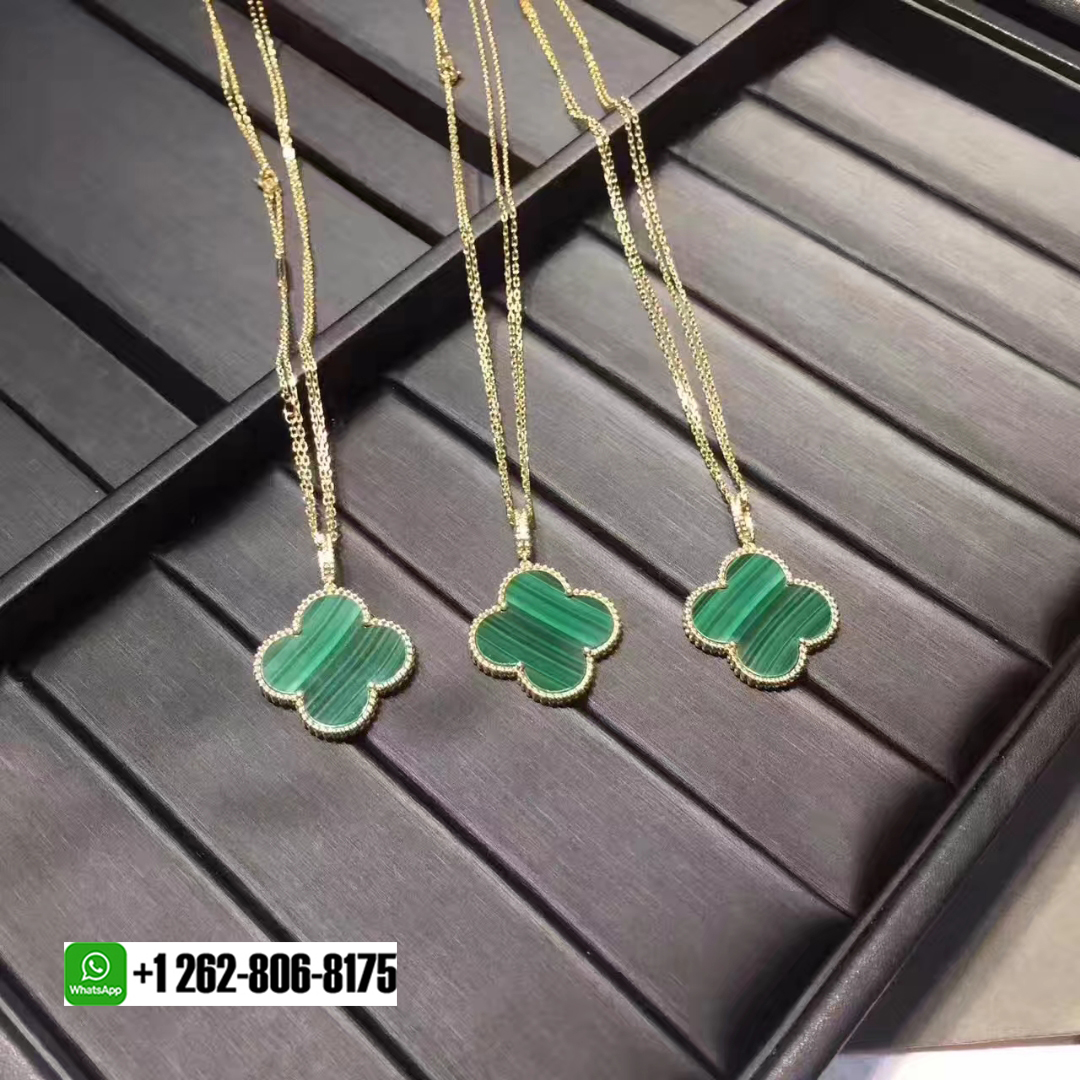 VCA Magic Alhambra Long Necklace 1 Motif 18K Yellow Gold with Malachite VCARO3MG00